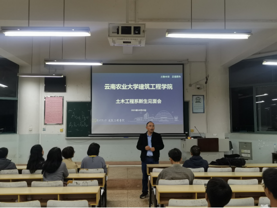 2023年10月25日晚,公司土木工程系在尚农楼3-17教室开展2023级新生入学教育暨学业导师见面会,公司副经理杨继清、2023级土木工程班主任李骏、2023级土木卓越工程师班班主任赵声玉、土木工程专业负责人陈伟,学业导师张立文、饶光媛、刘文治、周云川等老师,及2023级土木工程专业全体新同学共144人参加了本次见面会。会议由土木工程系副主任杨圣元老师主持,