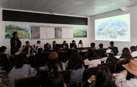 风蓝集团现场负责人张策向师生们详细介绍了百草村的总体策划和乡村规划情况,结合农文旅融合发展新模式的探索实践,从规划师视角向同学们分享了实际规划项目的工作逻辑和最终成果。通过百草村实际案例,向同学们讲解了如何将乡村振兴规划与产业规划相结合,以及如何提升乡村发展的效益与可持续性,如何进行驻村设计并使图纸确实落地等知识。通过他的专业讲解和丰富的实践经验传授,使同学们对乡村规划的重要性和影响力有了更深刻的认识。
