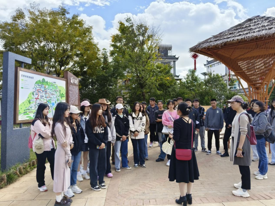 师生们参观学习公司校企合作企业云南风蓝项目投资咨询集团有限公司打造的文化旅游村——百草村。初冬时节,百草村白墙灰瓦,窗明几净,溪水绕村,花香四溢。村庄交通路网便捷,基础设施完善,使同学们亲身感受到通过规划焕发出的乡村新活力,以及繁荣兴旺的产业发展前景。