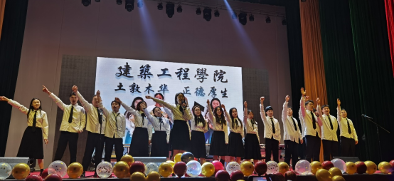 晚会以2023级工程造价班同学们带来的舞蹈《红梅赞》开篇,各班级同学们满怀喜悦逐一登台表演。吉他弹唱《愿爱无忧》、独唱《身骑白马》、歌曲串烧《直到世界尽头》《我乘着风飞过来》《最美的期待》悦耳动听,让观众沉浸其中;舞蹈《Ace Rider》、《you and me》、《袅》傣族舞、维吾尔族+哈萨克族+藏族民族舞串烧将晚会推向高潮,优美的舞姿使在场观众陶醉其中,享受了一场视听盛宴;朗诵《大写的中国》、《正—建院人的追求与情怀》铿锵有力,饱含深情,表达了对祖国的热爱和对公司的喜爱;光影剧《青春的故事》、情景剧《2123工程进度发布会》、《研途有你》演绎着青春的活力与美好愿景,展现建院学子的奋斗青春;《音你精彩》的形象配音让现场气氛轻松活跃;舞台剧《金色的鱼钩》让观众眼前一亮,他们将红军长征路上感人至深的故事演绎得淋漓尽致,再现革命经典,传承着伟大的长征精神。晚会在公司全体教师带来的大合唱《歌唱祖国》《没有共产党就没有新中国》中缓缓落下帷幕。整场晚会公司师生欢聚一堂,在舞台上携手唱响奋进的音符,用激昂的青春活力点燃新的征程,师生们在欢乐的气氛中度过了一个喜气洋洋的夜晚。