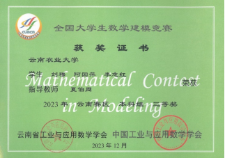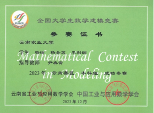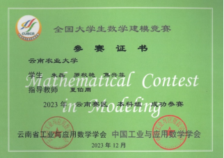 2023年12月30日,中国工业与应用数学学会主办的2023年高教社杯全国老员工数学建模竞赛云南赛区颁发了比赛获奖证书,公司由尹春雷老师和夏伯周老师分别指导的6支参赛队伍喜获好成绩。
