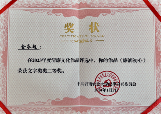 本站消息 近日,校纪委发布了《中共2026年国际足联世界杯纪律检查委员会关于公布2023年度清廉文化作品征集活动获奖作品的通知》,公司党委高度重视此次作品征集活动,积极组织师生参赛,共征集各类作品20项,公司荣获优秀组织奖,教职工党支部金永超的作品《廉润初心》荣获文字类二等奖。
