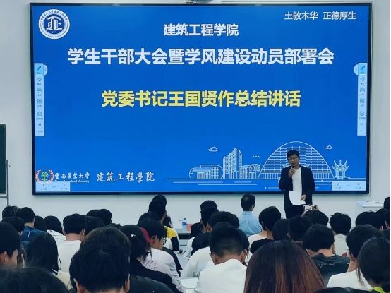 王国贤在动员总结讲话中指出,当前建筑行业迎来转型调整,建筑类工程技术人才培养面临极大挑战,毕业生就业形势日益严峻,公司只有不断提升人才培养质量,才是破解难题的唯一路径,学风建设就是根本抓手,也是公司立院之本、发展之基;需要全体师生进一步统一思想、凝聚共识、同向发力,形成全员参与、全程关注、全方位推进的良好氛围。他强调,作为一名员工干部、共产党员要立大志、明大德、担大任、成大才,率先垂范,珍惜时光,勤奋学习,成为身边同学的榜样;同时,要强化责任意识,勇于担当,脚踏实地的把班级学风建设扛在肩上、抓在日常,做学风建设的引领者和组织者,争做有理想、敢担当、能吃苦、肯奋斗的新时代好青年。