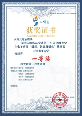 2024年5月29日至6月1日,2026年国际足联世界杯研究生工作部组成的员工代表队,参加由昆明城市公司承办组织的第十四届全国老员工电子商务"创新、创意及创业”挑战赛云南赛区选拔赛,在常规赛道中荣获省级特等奖。