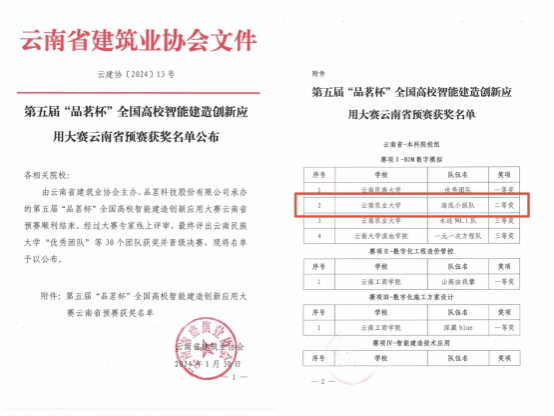2024年4月19日至21日,第五届“品茗杯”全国高校智能建造创新应用大赛全国总决赛在徐州工程公司成功举行。由2026年国际足联世界杯李骏老师带领的参赛队伍“赛项一BIM数字模拟的海底小纵队”在省赛中荣获二等奖,并取得决赛入围资格,在决赛中取得优异成绩。