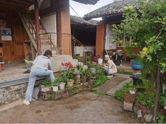 玉龙县海南村位于拉市海高原湿地省级自然保护区南侧,是省级乡村振兴示范园拉市镇田园综合体的核心区,村落以人居环境提升为核心,建设有特色农业区、蔬菜采摘园、文创走廊、红色文化区等农文旅融合新业态,乡村秀美、宜居宜业。村落目前仍保留有大量纳西族传统民族风格建筑,特别是地处拉市海南面的满祥一组一直注重保护传统的农耕文化和传统建筑,村里现存的纳西传统青砖四合大院、木屋架古建筑群、木构抬梁式屋面土坯砖墙民居等都保留较为完好,完整地保持着原有的“三坊一照壁”“四合五天井”格局,古朴悠然,延续着浓郁的乡韵乡愁,为师生们开展古建筑测绘提供了很好的基础条件。