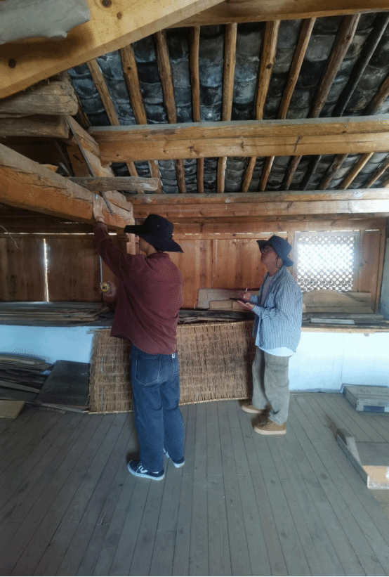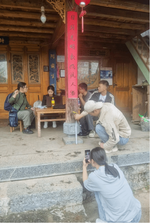 古建筑测绘课程是建筑学本科生的必修课,近年来,逐渐发展成为该专业实践育人、以及课程思政的重要环节之一。同学们在海南村走村串户,通过无人机协助摄影、激光测距扫描、传统手工测量等方法,对典型的代表性纳西族传统建筑进行了全方位信息采集,对建筑群总平面和建筑内部空间进行认真仔细测绘。虽然大雨暴雨经常说来就来,但整个队伍都干劲十足,风雨无阻地坚持工作。同学们每天天刚亮便早起工作,晚上拖着一天的疲惫,抓紧时间整理图纸和基础数据,甚至熬夜绘制平、立、剖面以及细部大样图的和三维建模,向教师汇报每日的测绘成果。测绘工作紧张有序,严肃认真,但也乐在其中。