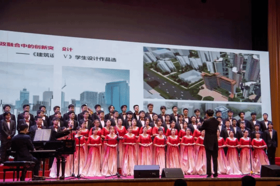 当晚,公司合唱队深情演绎了《不忘初心》这首歌曲,用坚定而深情的旋律表达了建院学子对伟大祖国的无限热爱与坚定信念。作为新时代的青年学子,我们时刻铭记“不忘初心,牢记使命”的誓言,将爱国主义情怀深植于心,勇于担当民族复兴的重任,争做新时代的奋斗者和追梦人。在演唱过程中,合唱队员们以嘹亮的歌声、精湛的演唱技巧,将歌曲中的情感演绎得深情而淋漓,展现出磅礴的气势与真挚的情感,每一个音符都如清泉般触动人心,深深打动了在场的评委与观众,赢得了经久不息的掌声与喝彩。