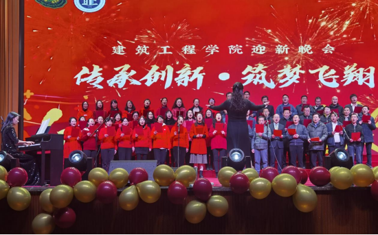 晚会尾声,当公司老师们身着整齐服装,齐声合唱院歌《筑梦飞翔》之时,那激昂奋进的旋律、饱含深情的歌声,将晚会气氛推向了高潮,充分展现了全院师生携手并肩、砥砺奋进、共创未来的坚定决心与美好信念。