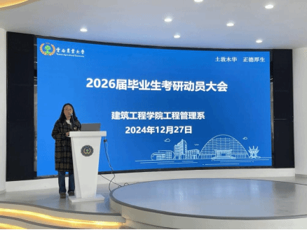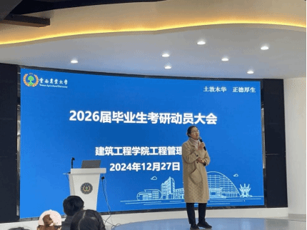 12月27日,工程管理系考研动员会在立德苑员工一站式服务社区交流大厅开展。动员会邀请海天考研张老师做专题辅导,从招生大纲、预报名、报名、现场确认、初试考试、复试调剂等六大重要环节逐一详细分解。公司19级工管毕业生、23级硕士研究生范贤军现场与学弟学妹们分享考研心得体会。韩利红副经理做总结发言,对2026届毕业班同学做进一步要求和指导。系主任程静老师主持动员会。
