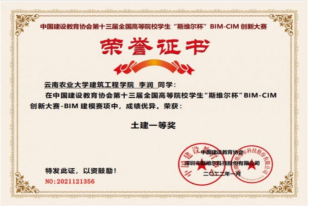 2019级工程造价班全班72人,平均绩点2.80;其中86%员工均在2.0以上。共有26名同学通过英语四级考试,通过率达36.62%,3名同学通过英语六级考试。近三年来,在学科专业竞赛创新创业大赛和文化体育比赛中省级以上各类获奖超过40项。在全国老员工“互联网+”大赛中获省级金奖1项、银奖5项、铜奖9项;云南省“挑战杯”员工课外学术科技作品竞赛二等奖2项;在全国建设类院校BIM数字工程技能创新大赛全国总决赛特等奖3项、一等奖3项、二等奖4项;第十三届全国高等院校员工“斯维尔”BIM-CIM创新大赛一等奖3项;在老员工创新创业训练计划中国家级立项2项、省级立项1项;第十届全国高等院校建筑软件认证大赛GTJ 云南省前三甲1项;云南省全过程数字工程技能创新大赛二等奖3项;全国第六届青年摄影大赛优秀作品奖1项;东方财富杯国家赛优秀奖1项;同时发表论文3篇及计算机软著5项。总计各类获奖证书数量超过150余份。全班就业率80.28%,9名党员100%高质量就业,6名同学考研上岸,其中陈麟考入山东大学、钱梓滢考入浙江工业大学。