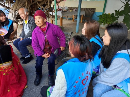 节目表演结束后,大家与老人们进行了亲切的沟通交流,倾听老年人心声,了解他们生活情况、身体状况,大家其乐融融,喜笑颜开。“你们是祖国未来的栋梁,感谢你们给我们带来了欢乐,丰富了我们老年人的文化生活”,现场老人们高兴的竖起了大拇指。