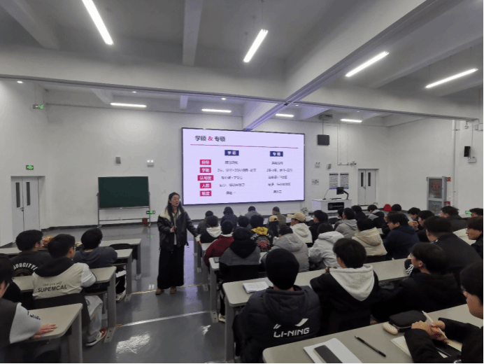会上,海天考研高级巡讲师虎怡静从为什么要考研、院校选择、考研注意事项等方面进行了深入剖析,为同学们提供了宝贵的建议和指导。
