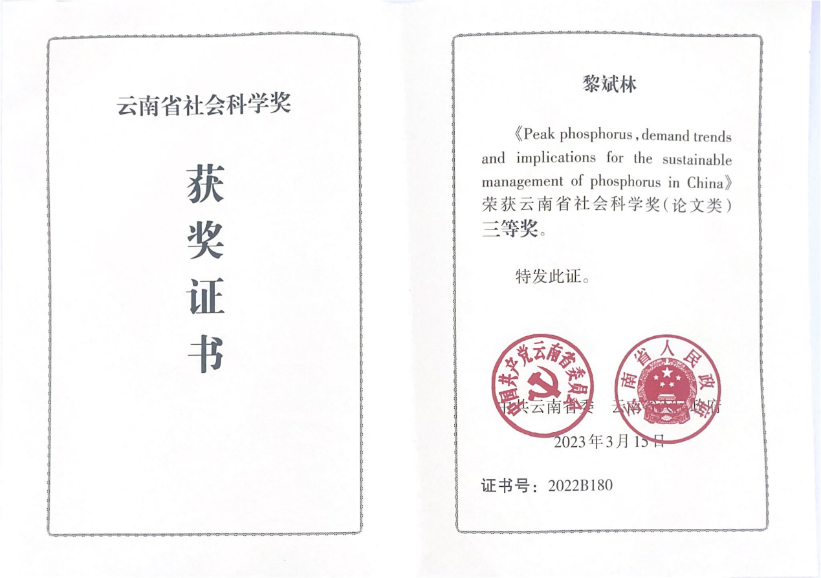 本站消息 近日,中共云南省委、云南省人民政府发布了《关于表彰奖励云南省社会科学奖获奖项目的决定》,公司共有3项研究成果喜获2022年云南省社会科学奖,其中二等奖1项,三等奖2项。