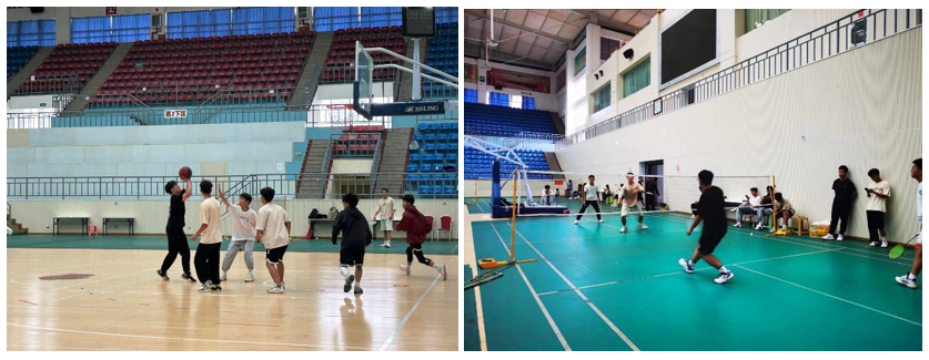 一大早室外细雨蒙蒙,班主任金永超老师就鼓励大家:“人生路上,有风有雨是常态,风雨无阻是心态,风雨兼程是状态”。师生共同想办法紧急将原本安排在室外的活动临时改到了体育馆。于是,中秋活动从激烈的篮球赛和羽毛球赛拉开序幕。活动开始同学们还有些许拘谨,金老师就带领着我们积极参与,手把手地教同学们打羽毛球,调动着整个现场的氛围。从早上到下午,节日的欢快氛围逐渐升温,一边是场上如火如荼的比赛,一边是同学们的加油声和欢声笑语。