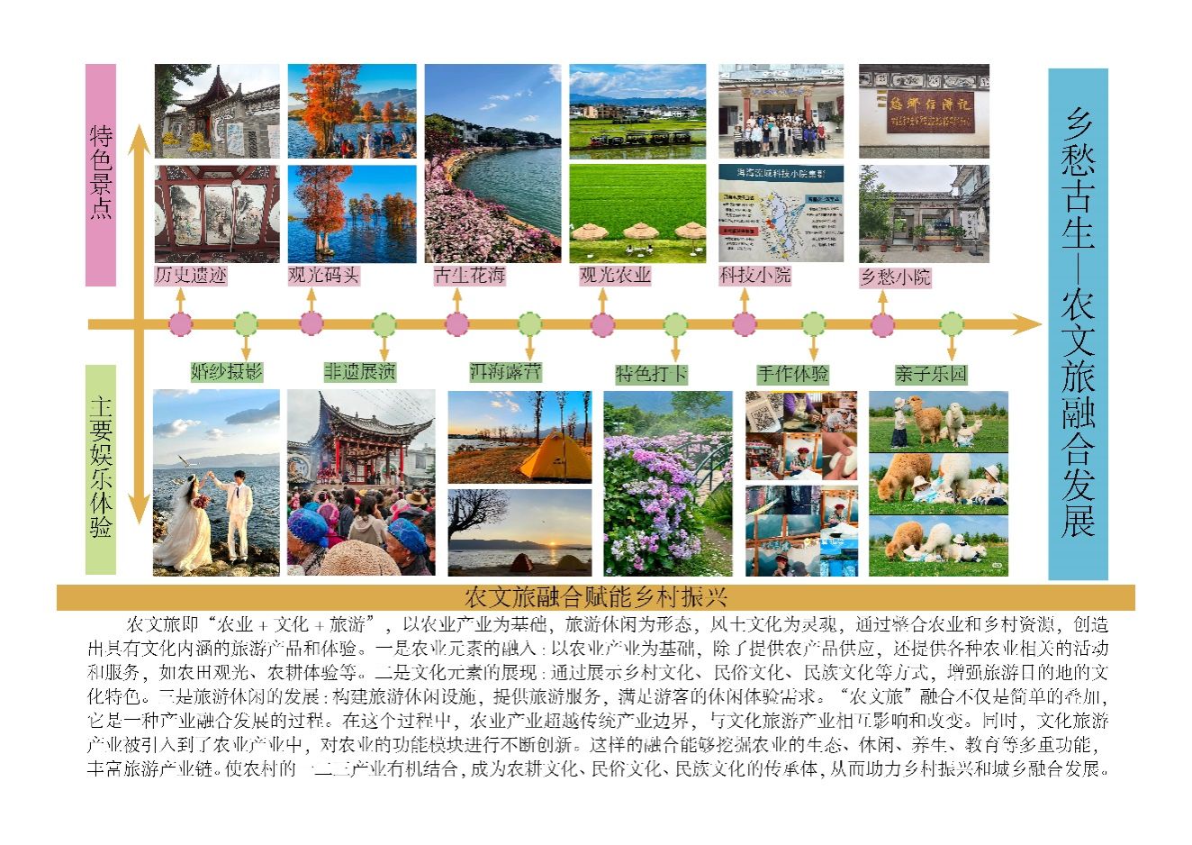 我们把吃、住、娱、购、行植入到古生村乡村振兴建设中,将古生村一二三产业有机结合,综合打造“古生古韵+旅游主导+科技赋能”三位一体产业延伸互动模式乡村,成为农耕文化、民族文化、民俗文化的传承体。