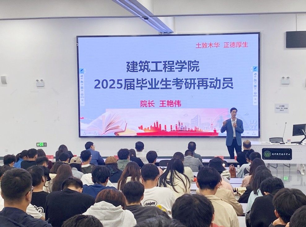 王艳伟经理对2025届毕业生就业和考研进行了再动员,他细致分析了当前工程建设领域的发展状况以及未来趋势,勉励同学们面对严峻就业形势的同时,也要看到机遇和发展方向。他鼓励同学们主动求职,扩宽视野,勇于走出舒适圈,积极走向有岗位需求的省内外地区,充分发挥和实现自身价值。此外,王经理结合未来发展向同学们强调了考研的重要性,希望大家能树立考研目标,坚定意志,扎实备考,不断提升自身学历和能力,增强核心竞争力应对未来的各种机遇和挑战。