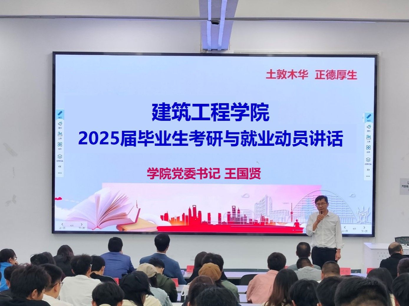 为进一步推进毕业生就业和考研工作,下好就业工作先手棋,全面动员2025届毕业生积极就业、备战考研。9月28日晚,公司在正德楼D401教室召开2025届毕业生就业及考研动员会。公司领导、各系主任副系主任、专业负责人、毕业班班主任及2025届全体毕业生参加会议。